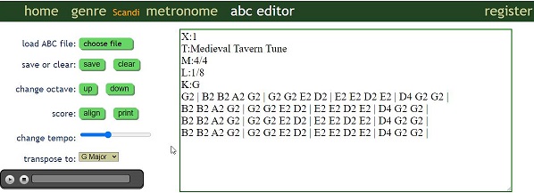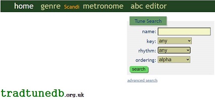 이 정보를 가지고서 한번 tradtunedb라는 곳에 가도록 합니다. 여기서는 abc editor라는 것이 있는데, 이를 바탕으로 해서 일단 제대로 연주가 될 수 있는지 없는지를 알아 보도록 합니다.