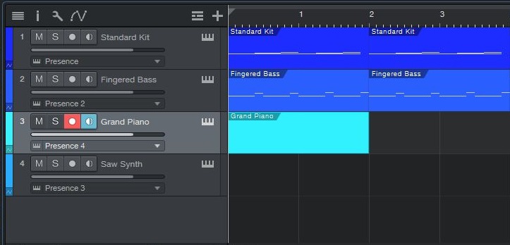 먼저 이 단소로운 리듬이 반복되는 곳에다가 그랜드 피아노를 써서 한번 무언가를 만들어 주기 위한 준비를 하도록 합니다. 이렇게 리젼을 추가해 주도록 했으며,
