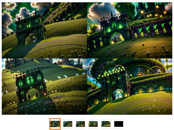 두번째 작품도 무언가 아치형으로 군데 군데 무언가가 있는 것이 아니라 막혀있는 이미지를 생성했으면 했는데, 그건 아니게 나온 것을 확인할 수 있었습니다.