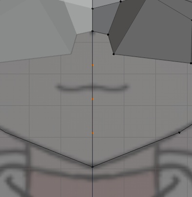 이제 턱과 콧등 사이에 F키를 눌러서 채워주는 것으로 선-에지를 하나 만들어 주도록 합니다. 그리고 나서 다음으로 루프컷 기능을 이용해서 버텍스를 3개 추가해 주고, G키를 두번 눌러서 일단 아래와 같이 이동시켜 주도록 합니다. 그리고 나서 입 부분에 해당할 수 있는 부위의 선을 제거해 줍니다.