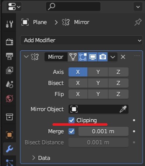 그리고 미러를 추가해 주는 것은 좋은데, 추가해 주면서, 위 스크린샷과 같이 일단 clipping이라고 클리핑을 지정해 주도록 합니다. 이렇게 하면 대칭이 되는 면을 넘어서 무언가 생성이 되지 않도록 만들어 줍니다.
